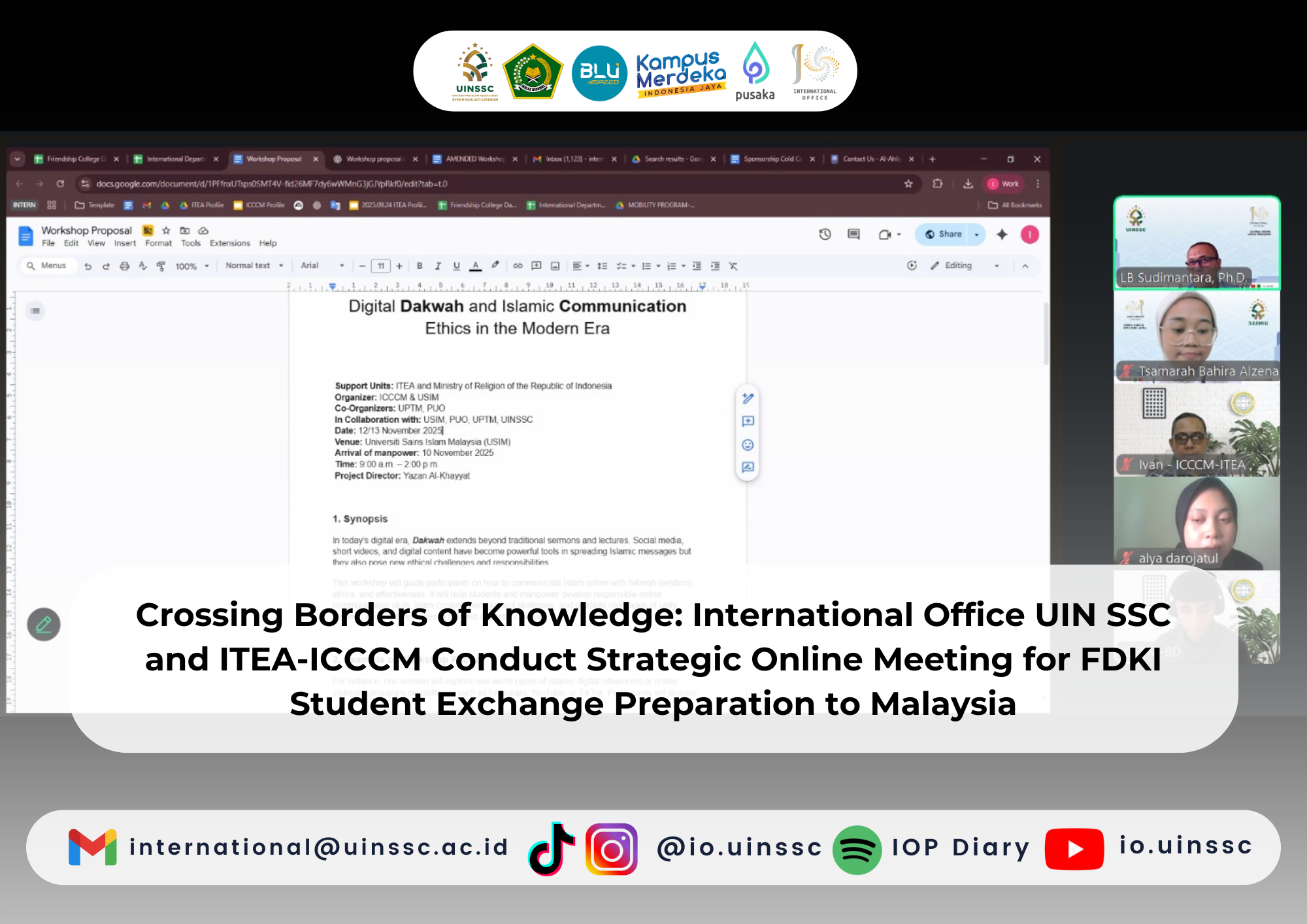 Crossing Borders of Knowledge: International Office UIN SSC and ITEA-ICCCM Conduct Strategic Online Meeting for FDKI Student Exchange Preparation to Malaysia