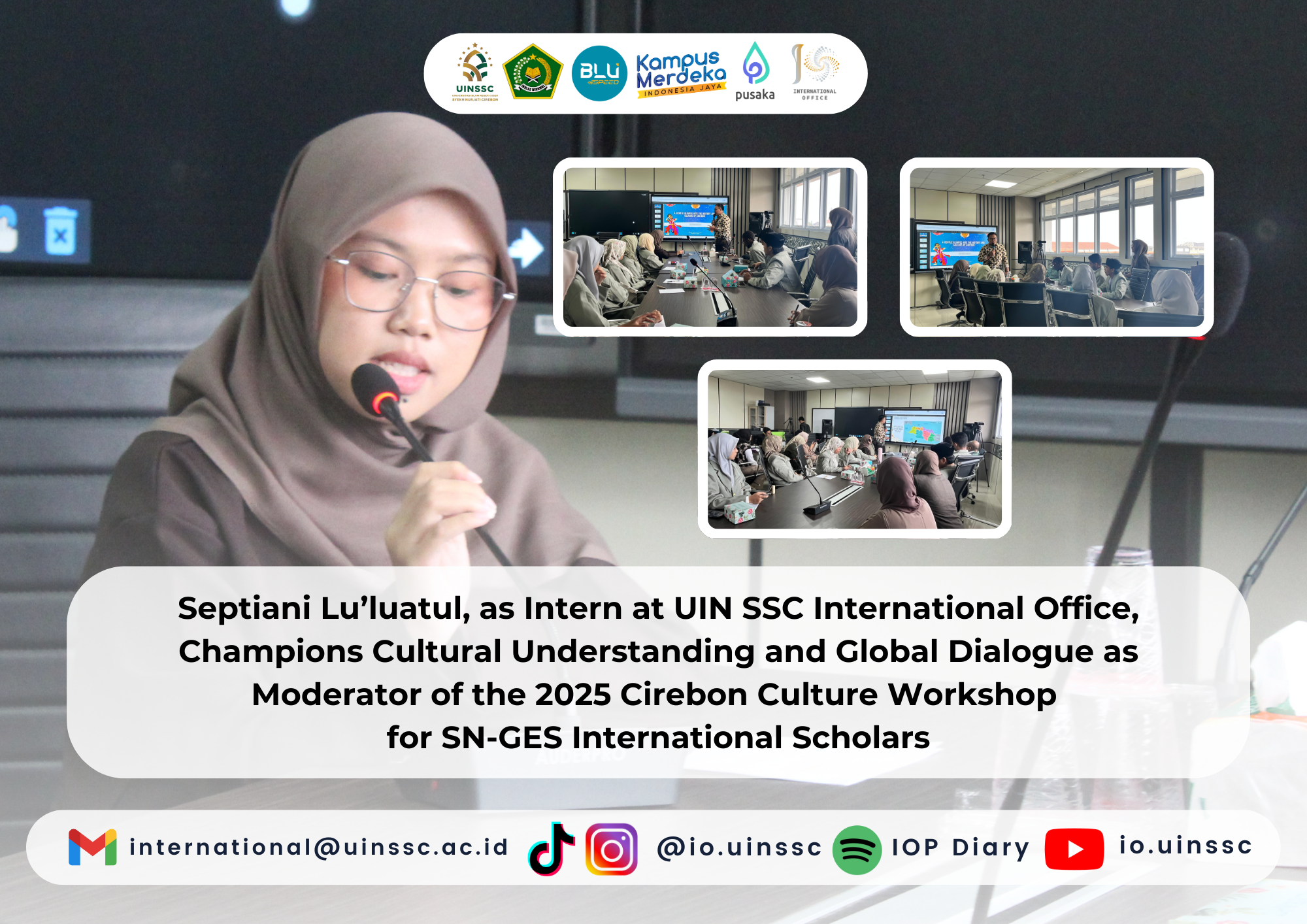 Septiani Lu’luatul, as Intern at UIN SSC International Office, Champions Cultural Understanding and Global Dialogue as Moderator of the 2025 Cirebon Culture Workshop for SN-GES International Scholars