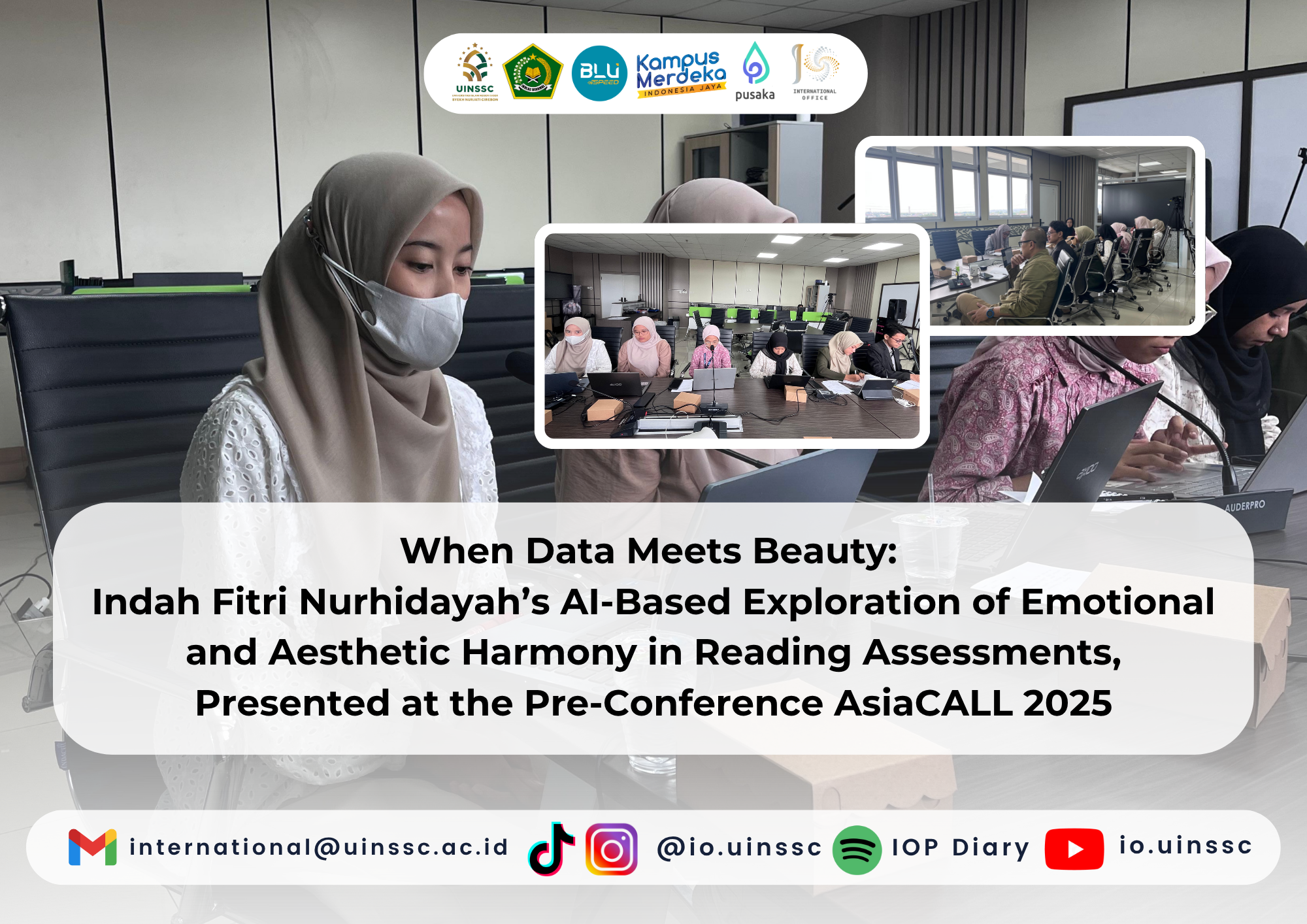Cirebon, October, 11th 2025 — Under the guidance of the International Office and Partnership of UIN Siber Syekh Nurjati Cirebon, led by Lala Bumela, Ph.D., a capacity-building workshop was held as part of the Pre-Conference AsiaCALL 2025. The event served as a preparatory platform for students presenting their full papers at the upcoming international conference. It brought together seven members of the Global Engagement Team—students who not only represented their institution but also the spirit of Indonesia’s digital education innovation on the global stage. The workshop was joined by international researcher Emma L. Schuberg from Charles Darwin University, Australia, who provided academic feedback and cross-institutional insights. Among the presenters, Indah Fitri Nurhidayah stood out with her thought-provoking paper titled “AI-Assisted Evaluation of Emotional and Aesthetic Alignment in Grade 10 Reading Assessments Based on PISA 2022 Standards.” As noted by Lala Bumela, the aim of this initiative was to “build a bridge between local research and international academic dialogue, empowering students to think critically, creatively, and globally.”